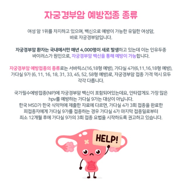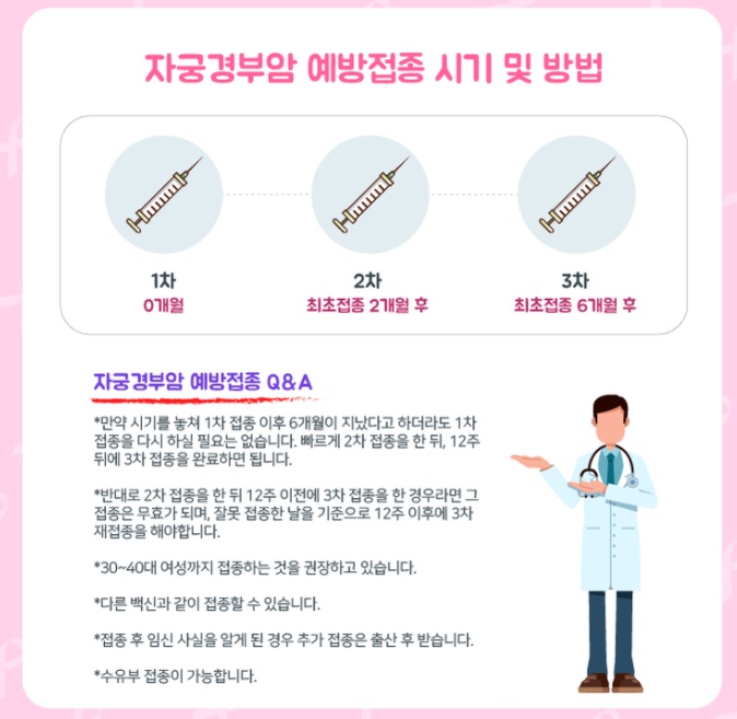또한 자궁경부암은 세계 유일 원인이 밝혀진 암이기 때문에 예방으로 인해 90%까지 암 예방을 할 수 있다고 하니 더욱이 더 예방접종을 해야겠죠?